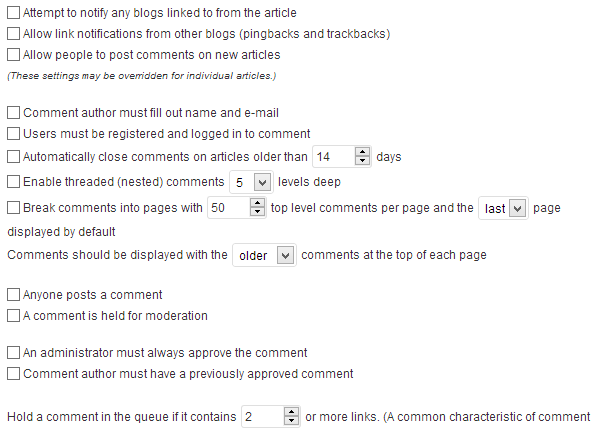 এছাড়া ওয়ার্ডপ্রেসের বিল্ট-ইন অপশনগুলোও অনেক কাজে দেয়। ওয়ার্ডপ্রেসের ডিসকাশন সেটিংসে গিয়ে বেশ কিছু রুলস বাছাই করা যাবে। নিচের স্ক্রিনশটটি দেখলেই বিষয়টি পরিষ্কার হওয়ার কথা।